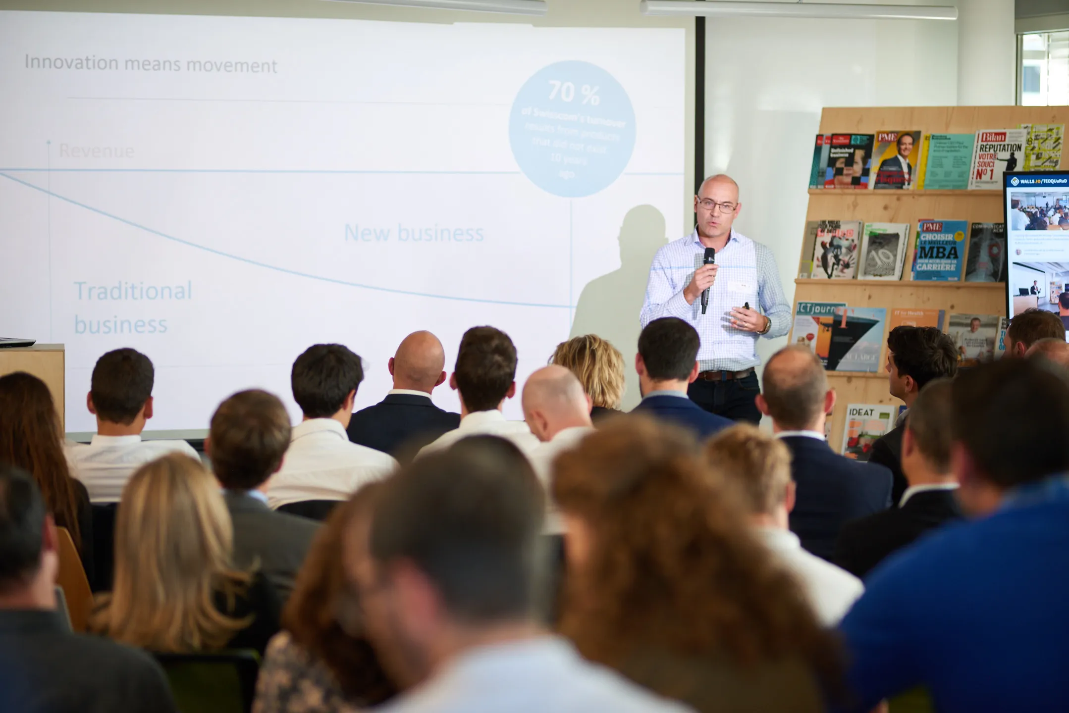 L’événement s’est déroulé autour de pitches, de courtes présentations qui doivent être suffisamment percutantes pour trouver un ou des investisseurs potentiels. L’ambiance était sensiblement différente avant, pendant et après les présentations.